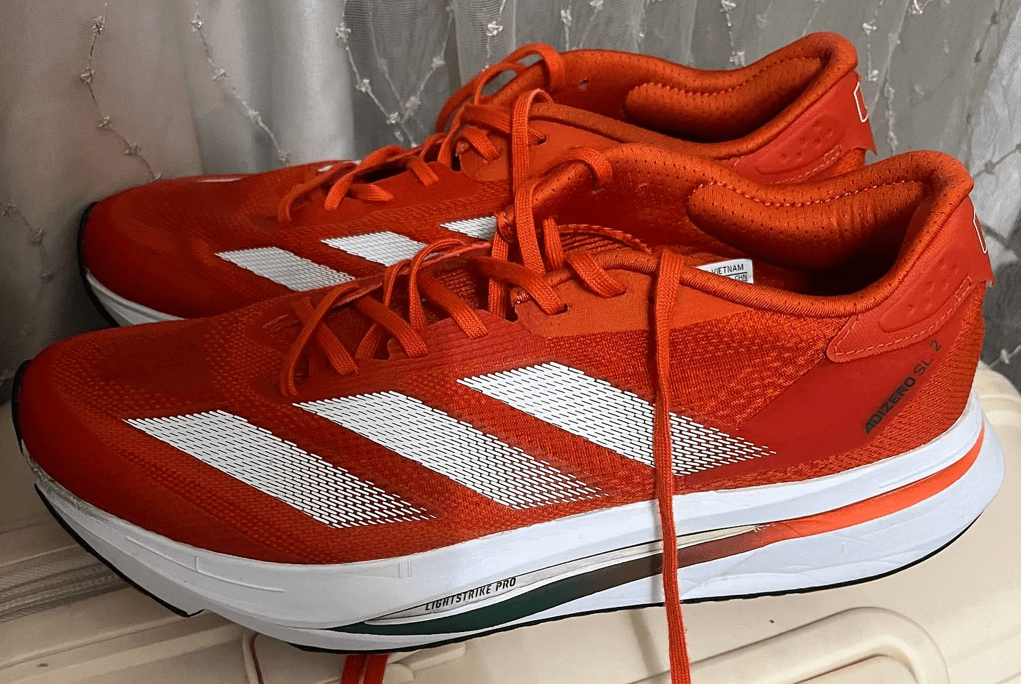 Adidas Adizero SL2. Lightweight, sexy, fast and budget-friendly. I wear them for my quality workouts like tempo, intervals and threshold runs. And for races, too. In Turkistan, I ran 10k in 48:57 with them. I bought them for about $65 (they were on sale). I love the color.